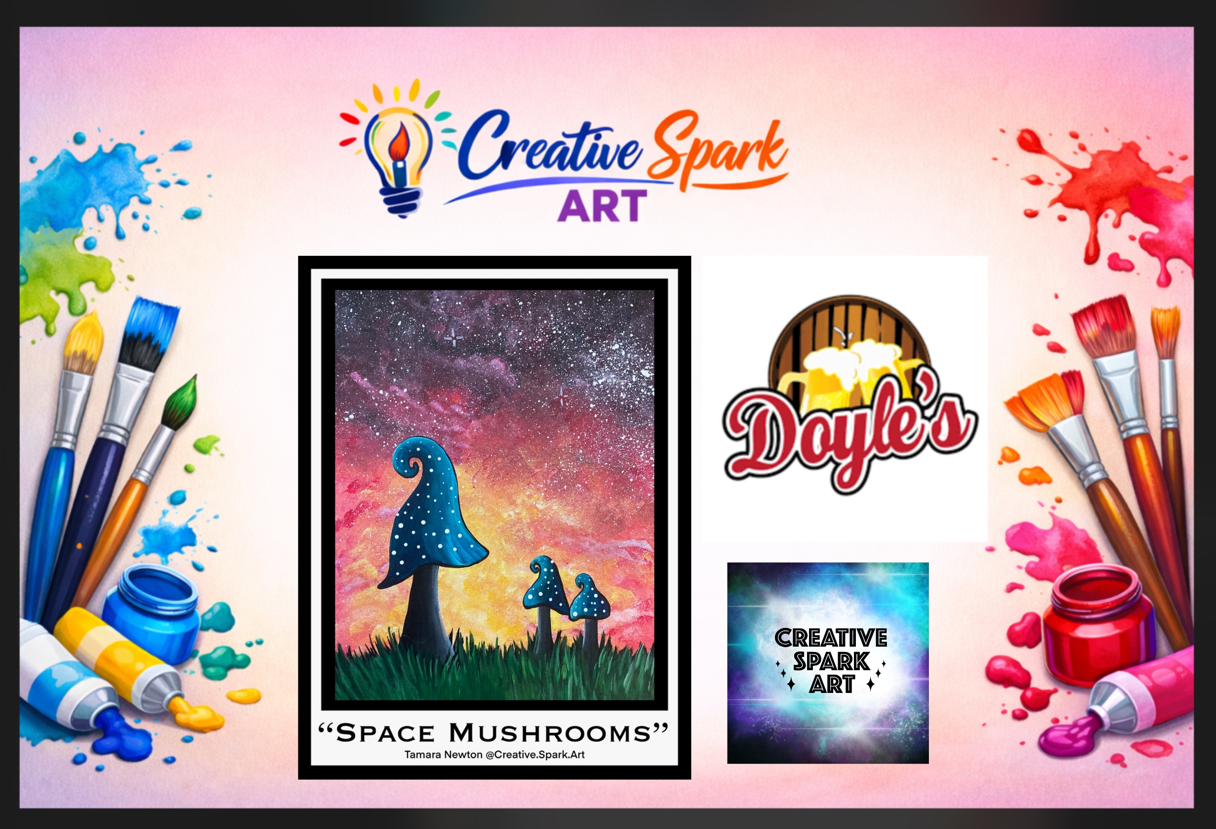 Join us April 9 for a fun, whimsical paint night! We’ll create a colourful “Space Mushrooms” painting with a glowing galaxy sky, fully customizable and perfect for beginners. No experience needed—just come sip, paint, and have fun! Seats are limited. ✨